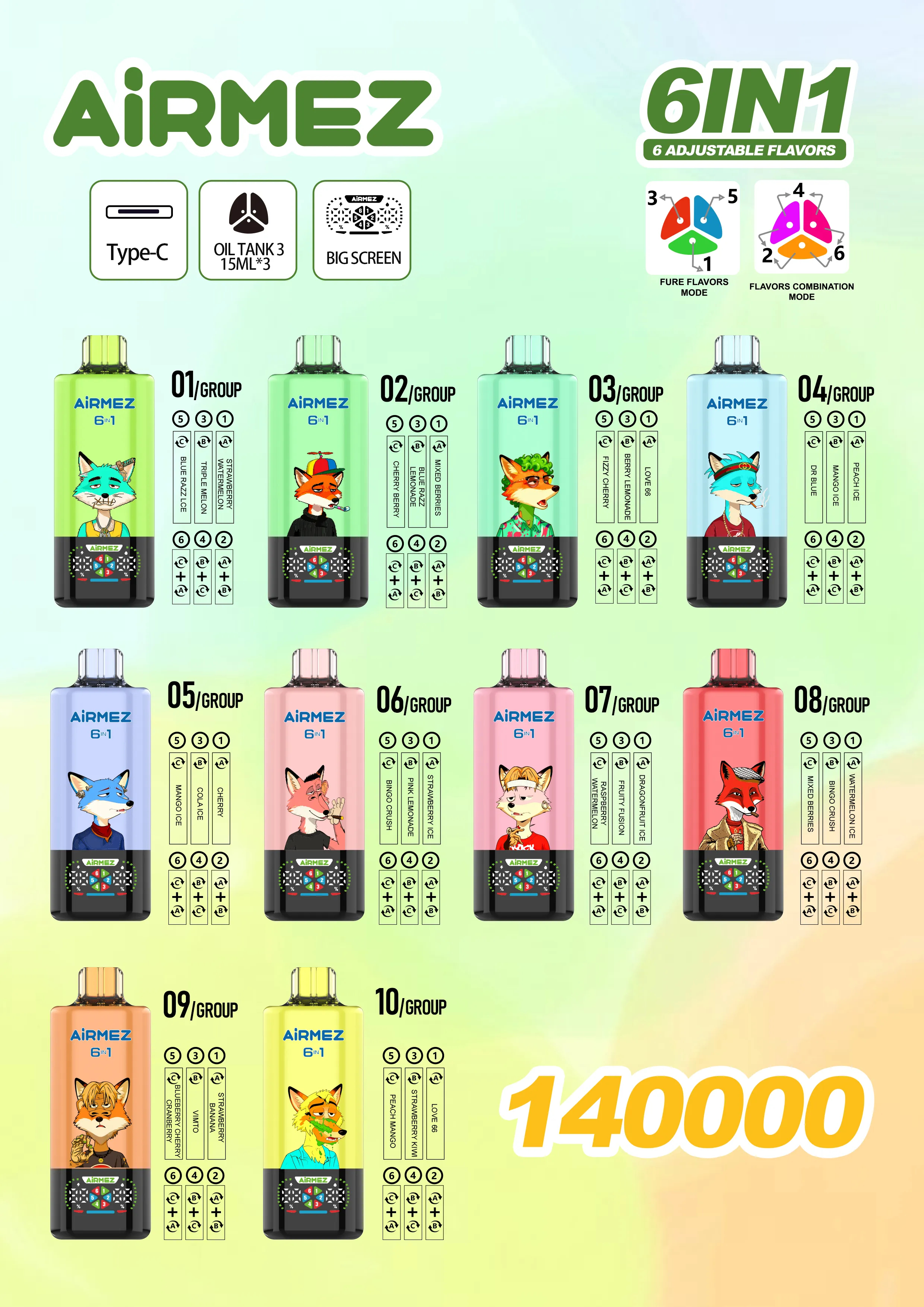 Airmez FOX 140000 Puffs 6 IN 1