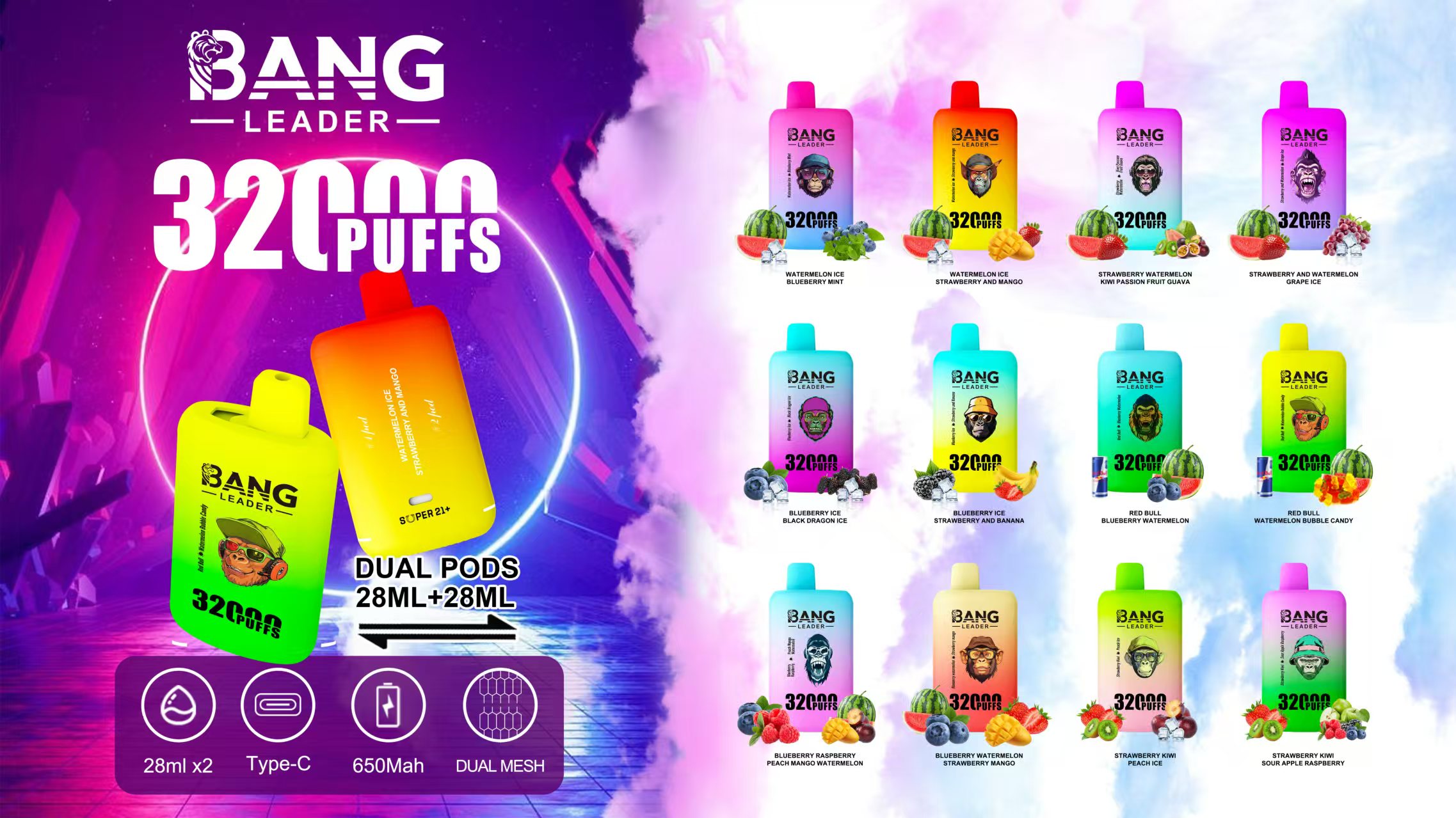 Bang Leader 32000|デュアルフレーバー使い捨て電子タバコ